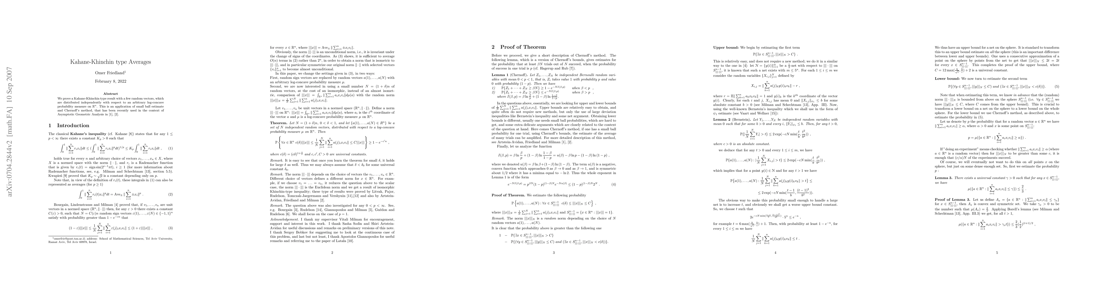 We prove a Kahane-Khinchin type result with a few random vectors, which are distributed independently with respect to an arbitrary log-concave probability measure on $\R^n$. This is an application of small ball estimate and Chernoff's method, that has been recently used in the context of Asymptotic Geometric Analysis in [1], [2].