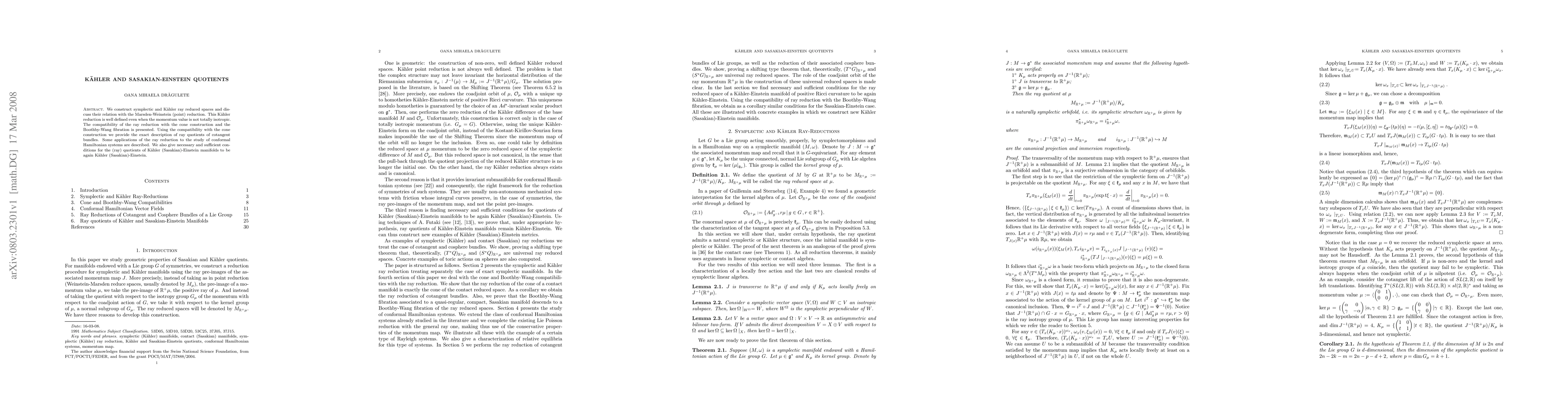 This paper constructs symplectic and Kähler ray reduced spaces and explores their relation to Marsden-Weinstein reduction, providing conditions for their existence even when momentum is not totally isotropic. It also discusses applications to conformal Hamiltonian systems and gives necessary and sufficient conditions for the quotients of Kähler and Sasakian-Einstein manifolds to remain Kähler or Sasakian-Einstein.