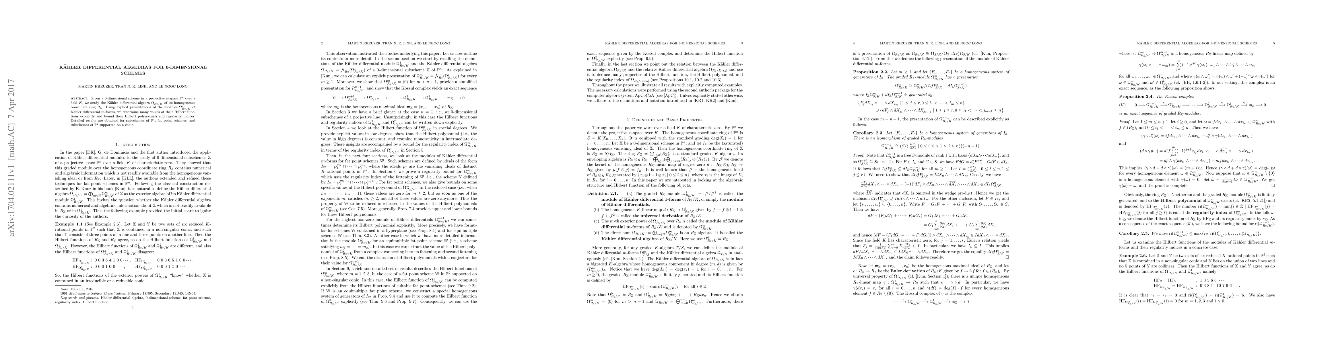 This paper investigates the Kähler differential algebra of 0-dimensional schemes in projective space, determining explicit values for their Hilbert functions and bounding their Hilbert polynomials and regularity indices, with detailed results for subschemes of $\mathbb{P}^1$, fat point schemes, and subschemes of $\mathbb{P}^2$ on a conic.