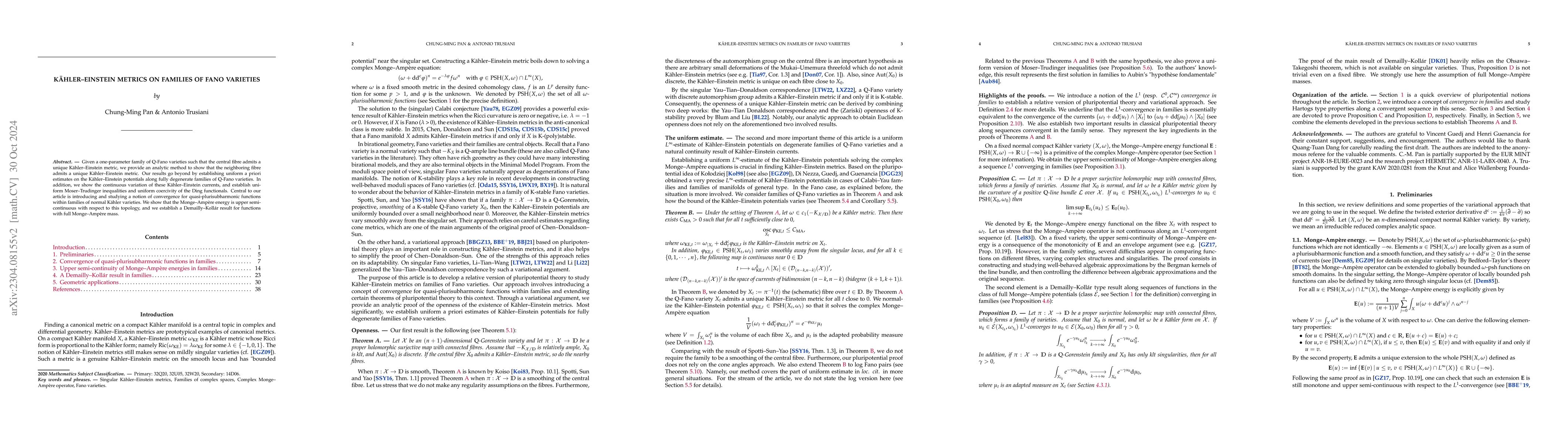 We provide an analytic proof of the openness of the existence of unique K\"ahler-Einstein metrics and establish uniform a priori estimates on the K\"ahler-Einstein potentials along degenerate families of $\mathbb{Q}$-Fano varieties. Moreover, we show that these K\"ahler-Einstein currents vary continuously, and we prove uniform Moser-Trudinger inequalities. The core of the article regards a notion of convergence of quasi-plurisubharmonic functions in families of normal K\"ahler varieties that we introduce and study here. We show that the Monge-Amp\`ere energy is upper semi-continuous with respect to this convergence, and we establish a Demailly-Koll\'ar result for functions with full Monge-Amp\`ere mass.