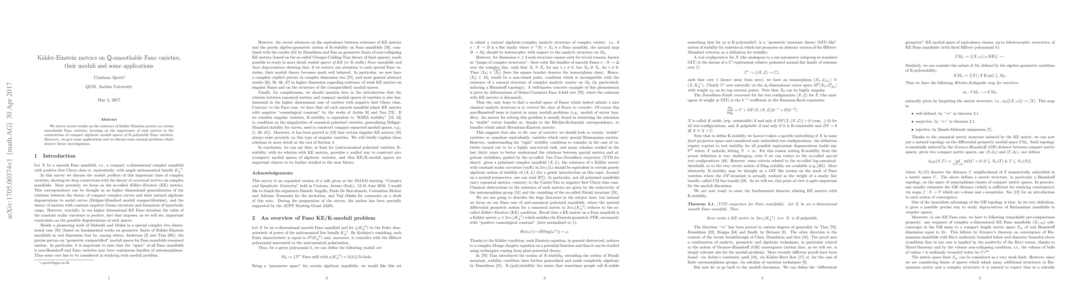 This paper reviews recent findings on the existence of Kähler-Einstein metrics on Q-smoothable Fano varieties, emphasizing their role in constructing compact algebraic moduli spaces for K-polystable Fano varieties, and suggests further research directions.