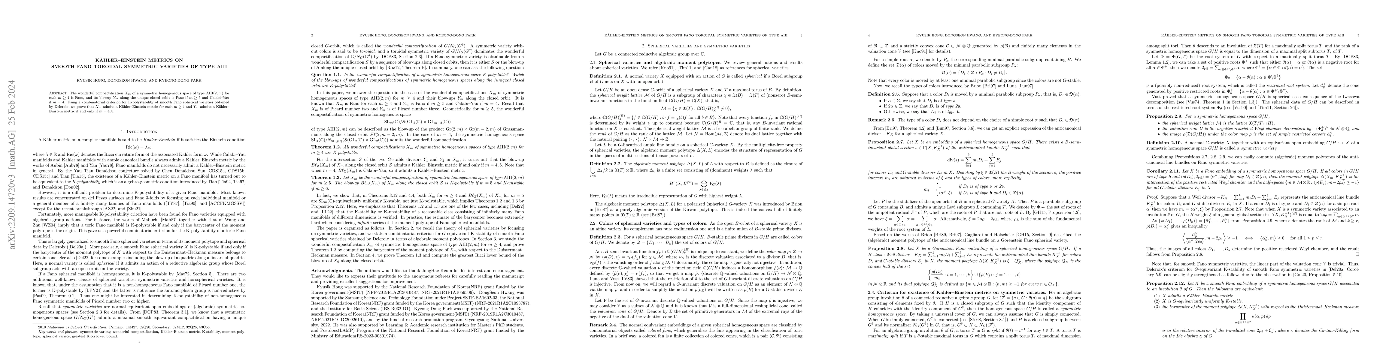 Summary: The research demonstrates that the wonderful compactification of a type AIII symmetric space admits a Kähler-Einstein metric for $m \geq 4$, while its specific blowup is Kähler-Einstein when $m = 4$ and potentially Calabi-Yau when $m = 5$.