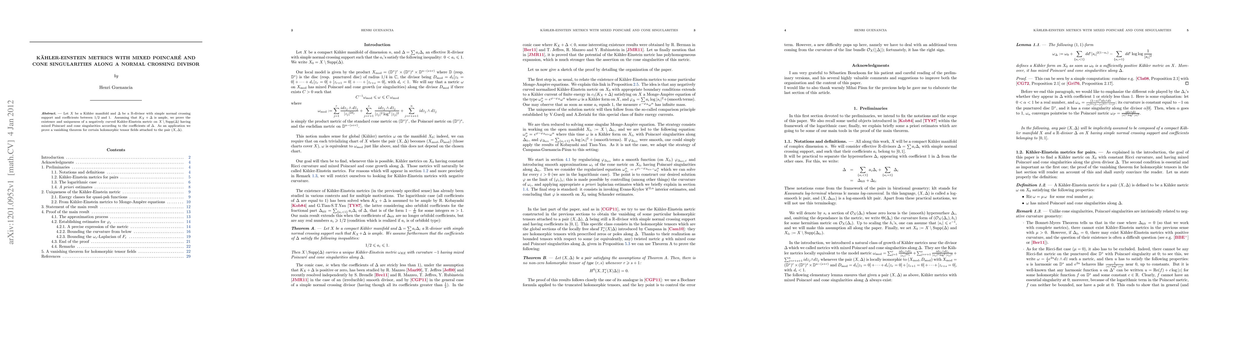 This paper proves the existence and uniqueness of a negatively curved Kähler-Einstein metric on a Kähler manifold with a normal crossing divisor, featuring mixed Poincaré and cone singularities. It also establishes a vanishing theorem for holomorphic tensor fields associated with the given pair.