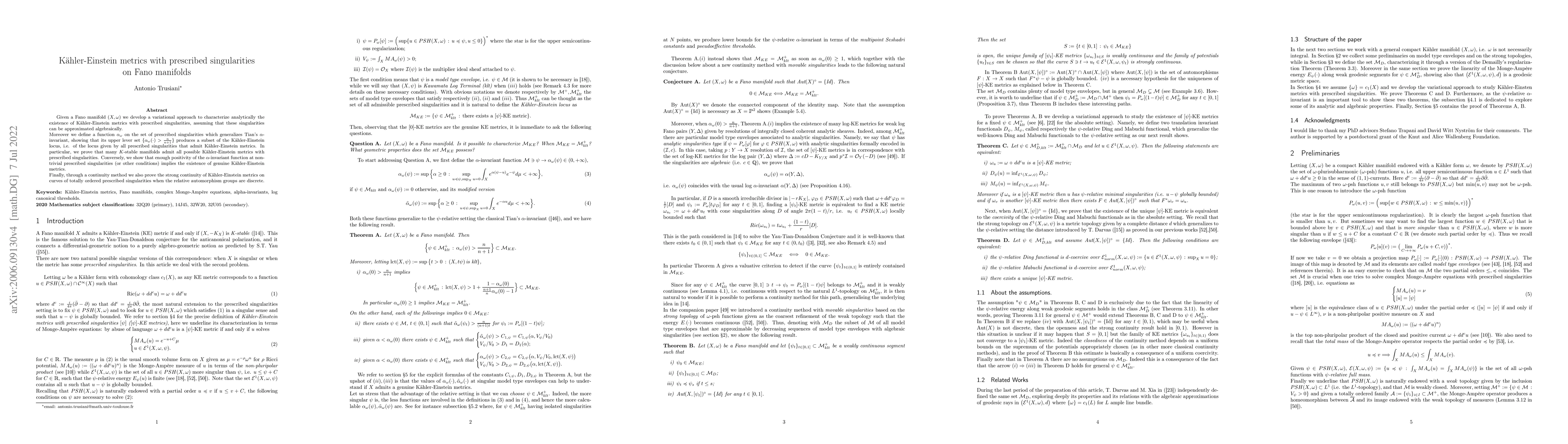 This paper develops a variational approach to find Kähler-Einstein metrics on Fano manifolds with specified singularities, introducing an $\alpha_{\omega}$ function that generalizes Tian's $\alpha$-invariant and establishes its connection to the Kähler-Einstein locus. It proves the existence of such metrics for many $K$-stable manifolds and shows the strong continuity of these metrics under certain conditions.