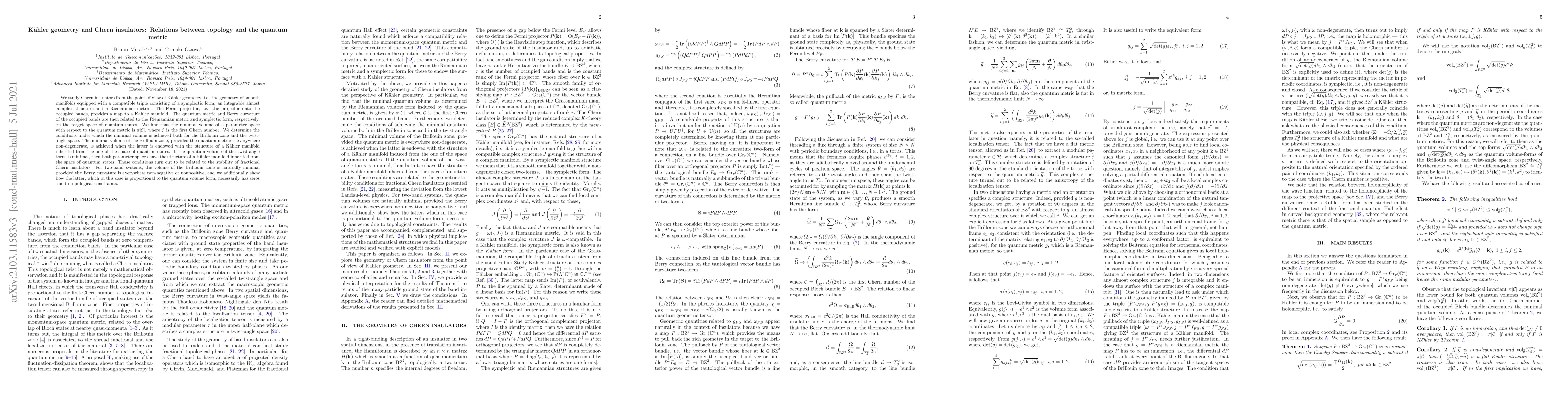 Researchers explore the connection between Chern insulators and K"ahler geometry, finding that minimal volume conditions are related to stability of fractional Chern insulators and topological constraints.