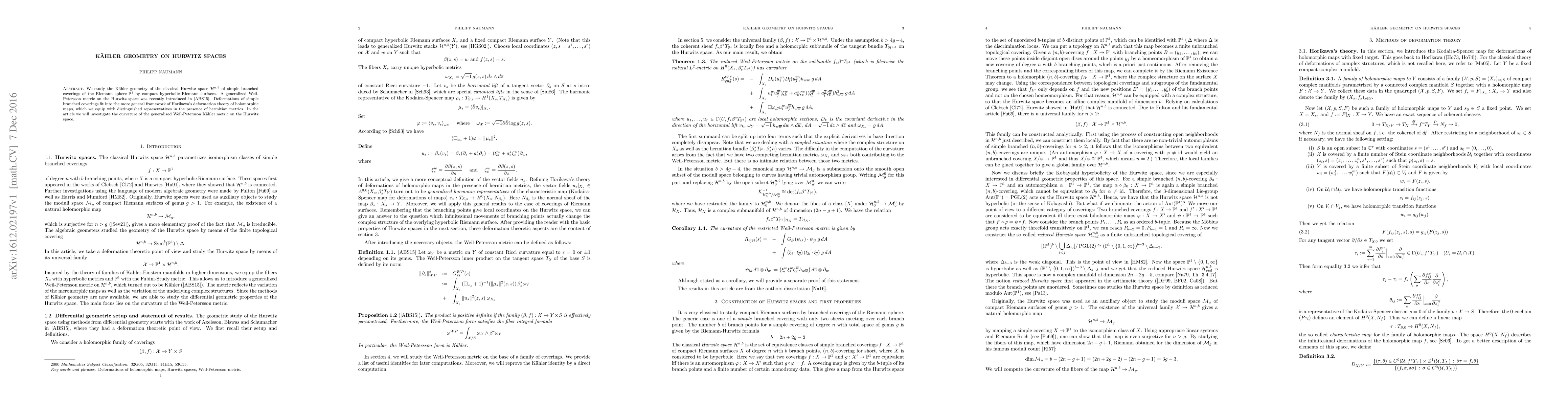 This paper investigates the Kähler geometry of Hurwitz spaces, focusing on the curvature properties of the recently introduced generalized Weil-Petersson metric within Horikawa's deformation theory framework for holomorphic maps. The study aims to understand the geometric structure of simple branched coverings of the Riemann sphere.