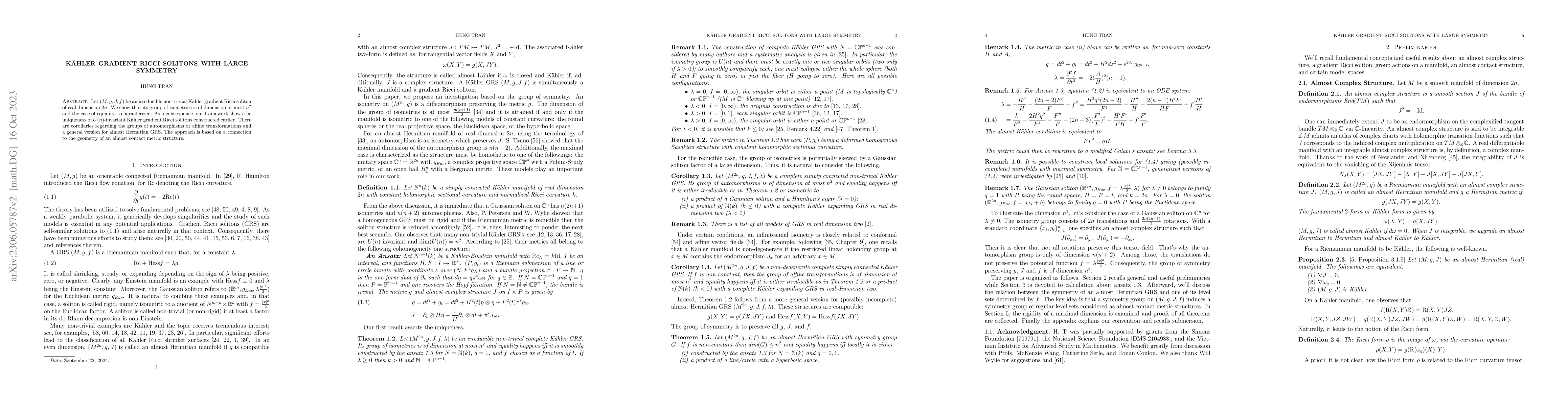 This paper demonstrates that the isometry group of an irreducible non-trivial Kähler gradient Ricci soliton in real dimension $2n$ has dimension at most $n^2$, with the equality case characterized. It also establishes the uniqueness of $U(n)$-invariant Kähler gradient Ricci solitons.