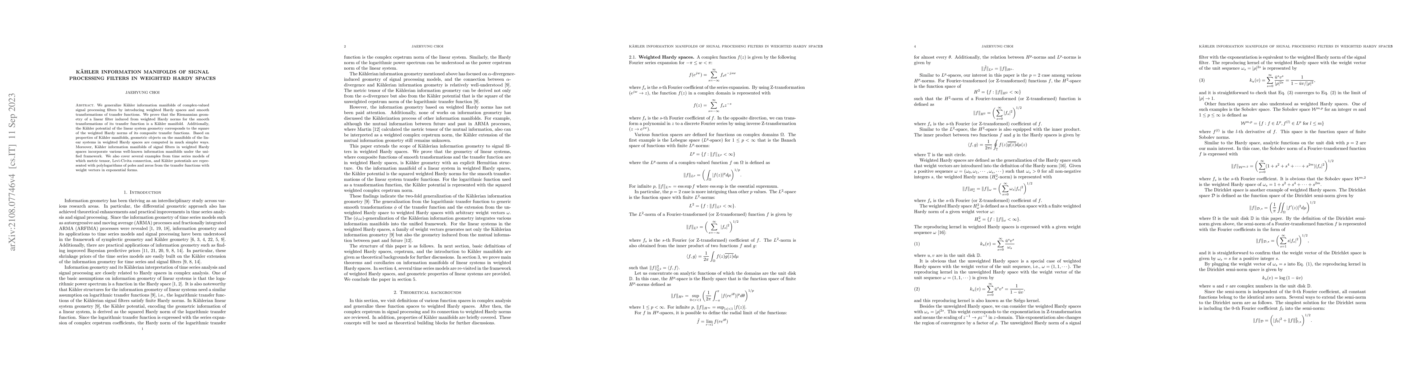 This paper generalizes Kähler information manifolds for complex-valued signal processing filters by introducing weighted Hardy spaces and smooth transformations of transfer functions. It demonstrates that the Riemannian geometry of linear filters in these spaces forms a Kähler manifold, simplifying computations of geometric objects and incorporating various known information manifolds under a unified framework.