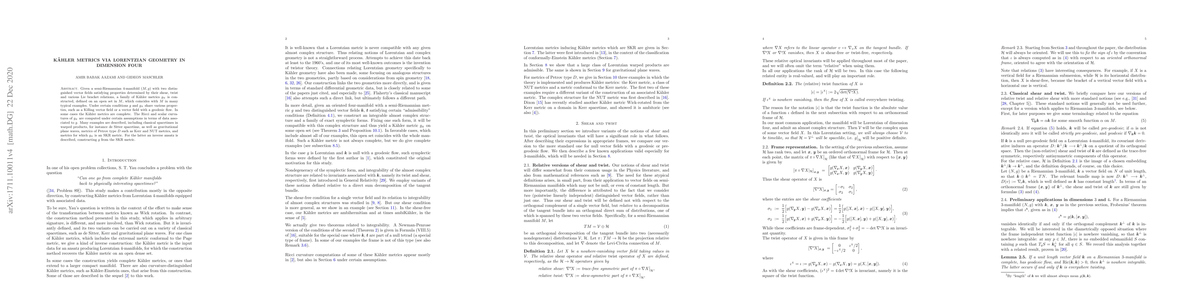 Researchers develop a method to construct K"ahler metrics from Lorentzian geometry in 4-dimensional manifolds, enabling the study of complex spacetimes with various symmetries and properties.