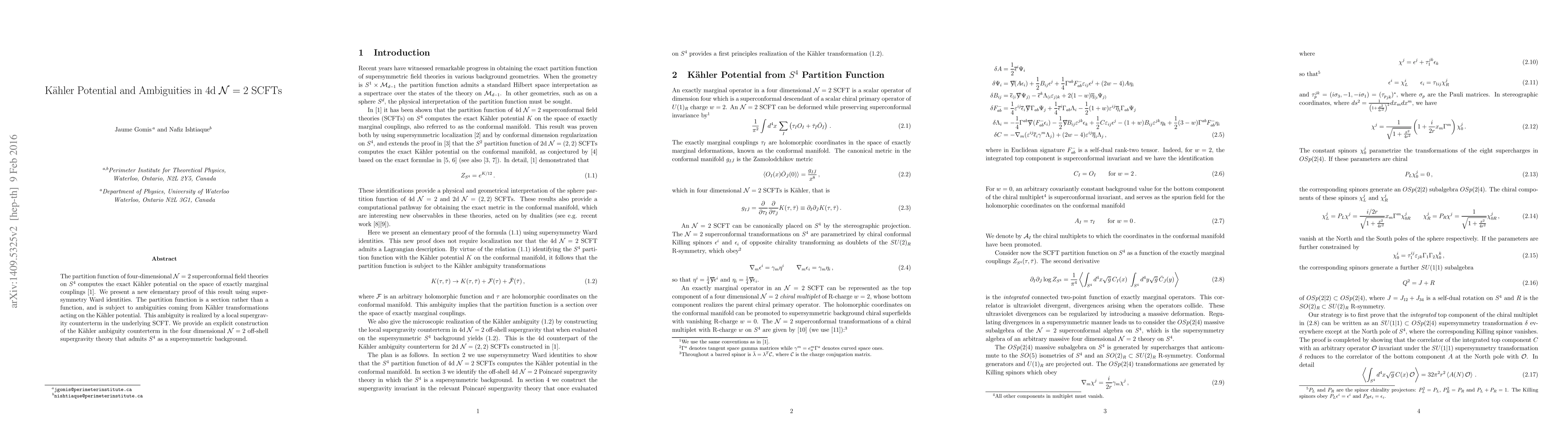 This paper presents a new proof of the computation of the exact Kahler potential in 4d N=2 superconformal field theories using supersymmetry Ward identities. It also addresses the ambiguities in the partition function due to Kahler transformations, which are addressed by a local supergravity counterterm in the underlying SCFT.