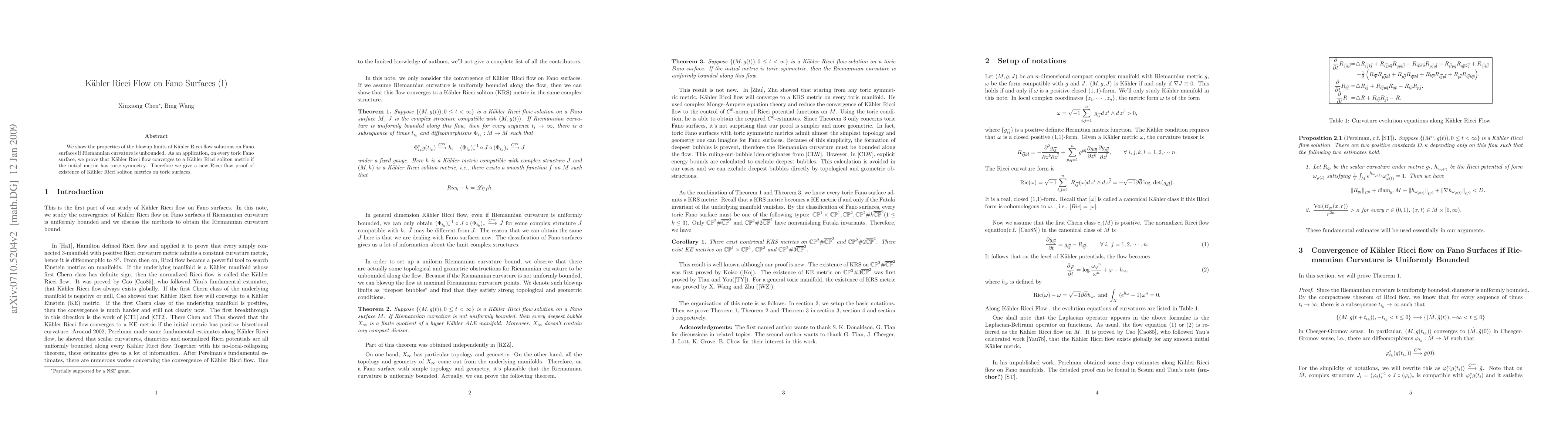 Summary: This paper investigates the blowup limits of Kähler Ricci flow solutions on Fano surfaces, demonstrating that when curvature is unbounded, the flow converges to a Kähler Ricci soliton metric on toric Fano surfaces with toric symmetry, offering a new proof of their existence.