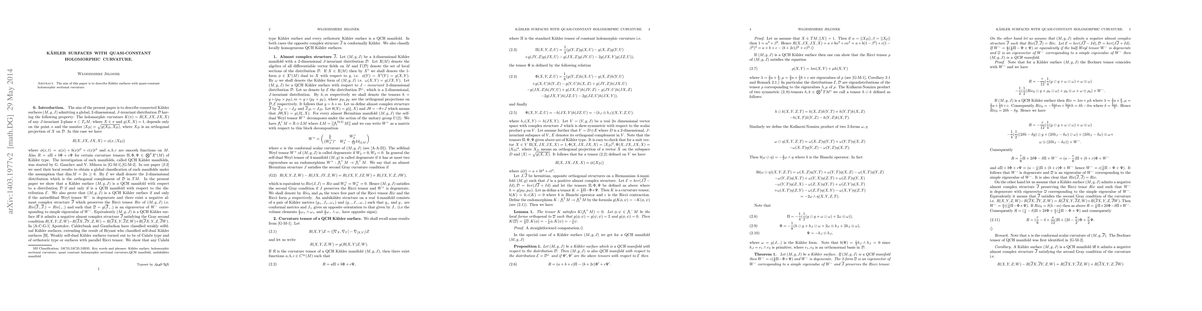 The aim of this paper is to describe Kahler surfaces with quasi-constant holomorphic curvature