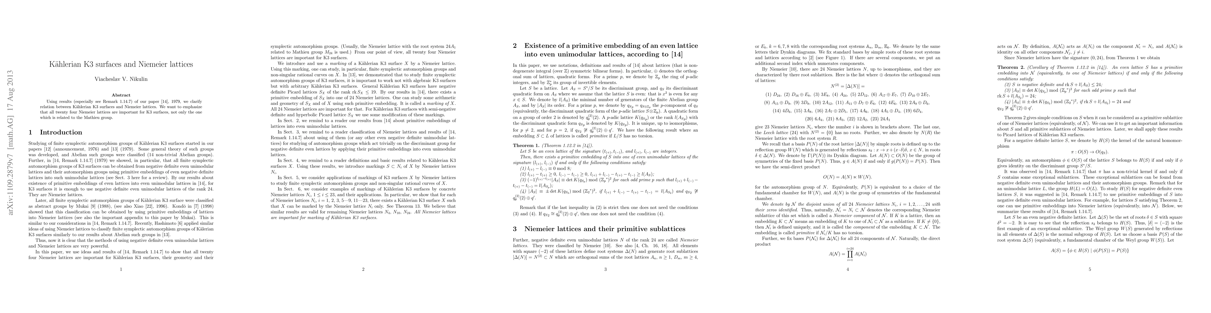 This paper clarifies the relationship between Kahlerian K3 surfaces and Niemeier lattices, emphasizing that all twenty-four Niemeier lattices are significant for K3 surfaces, not just the one associated with the Mathieu group, using results from a referenced 1979 paper on integral symmetric bilinear forms.