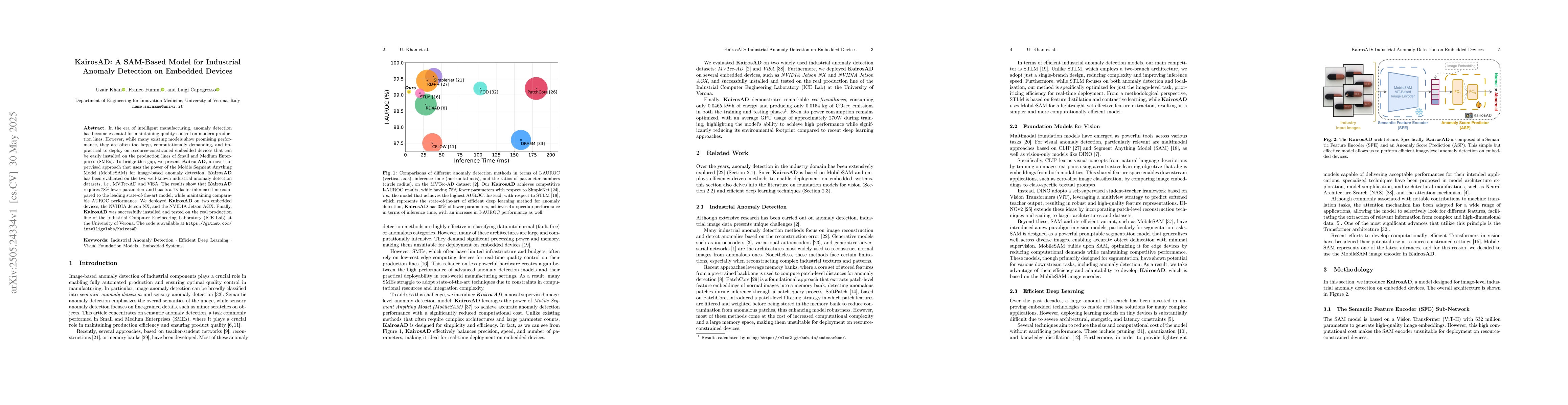 KairosAD introduces a lightweight, efficient anomaly detection model using MobileSAM for feature extraction, optimized for real-time deployment on embedded devices.