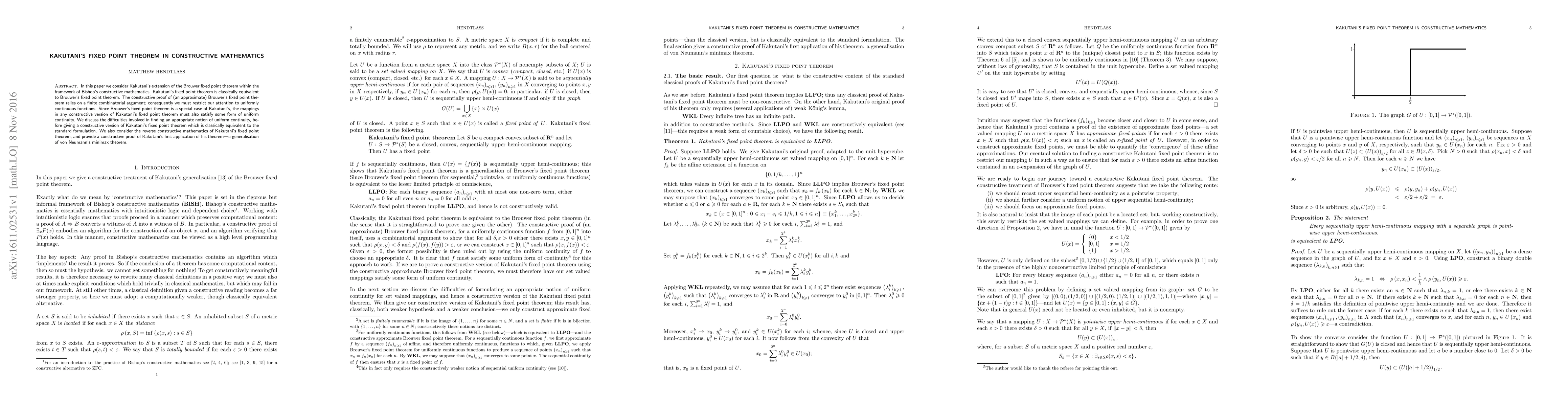 In this paper we consider Kakutani's extension of the Brouwer fixed point theorem within the framework of Bishop's constructive mathematics. Kakutani's fixed point theorem is classically equivalent to Brouwer's fixed point theorem. The constructive proof of (an approximate) Brouwer's fixed point theorem relies on a finite combinatorial argument; consequently we must restrict our attention to uniformly continuous functions. Since Brouwer's fixed point theorem is a special case of Kakutani's, the mappings in any constructive version of Kakutani's fixed point theorem must also satisfy some form of uniform continuity. We discuss the difficulties involved in finding an appropriate notion of uniform continuity, before giving a constructive version of Kakutani's fixed point theorem which is classically equivalent to the standard formulation. We also consider the reverse constructive mathematics of Kakutani's fixed point theorem, and provide a constructive proof of Kakutani's first application of his theorem---a generalisation of von Neumann's minimax theorem.