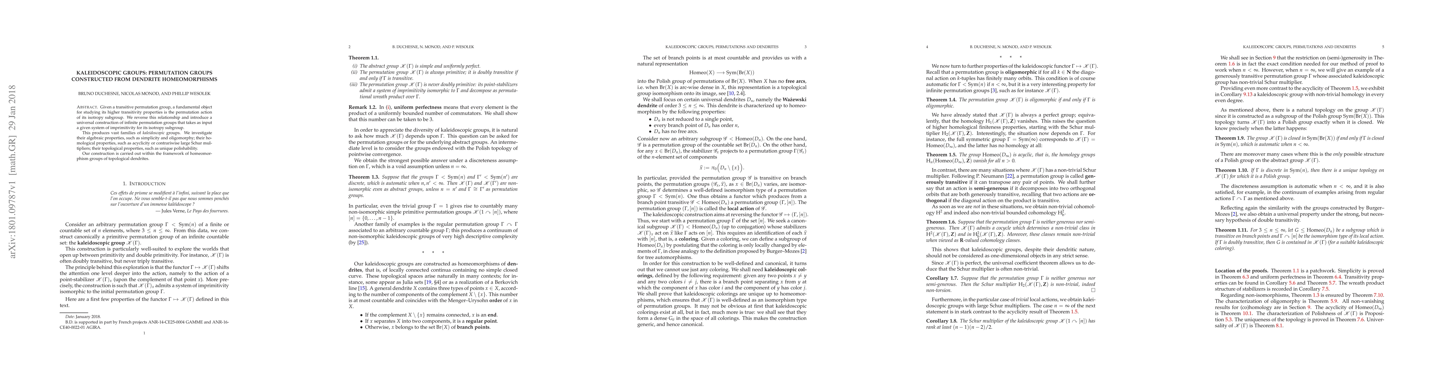 This paper constructs infinite kaleidoscopic permutation groups from homeomorphisms of topological dendrites, exploring their algebraic simplicity, homological properties, and topological polishability. The construction uses systems of imprimitivity for the isotropy subgroup, leading to vast families of these groups.