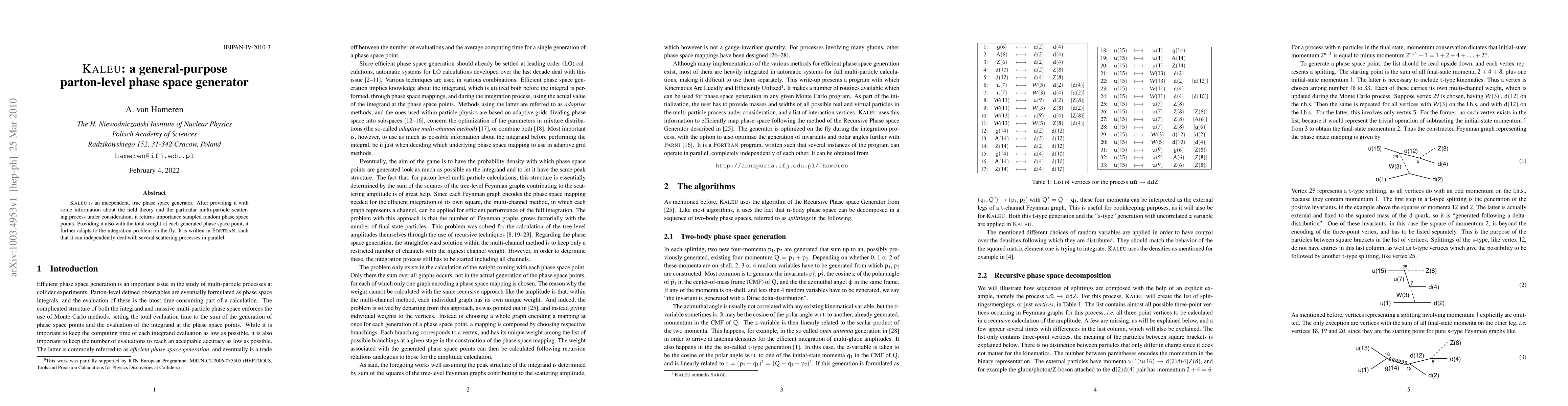 A new tool called Kaleu can generate random phase space points for complex particle collisions, making it easier to analyze these events in physics research. Kaleu is a flexible and efficient solution that can handle multiple processes simultaneously.