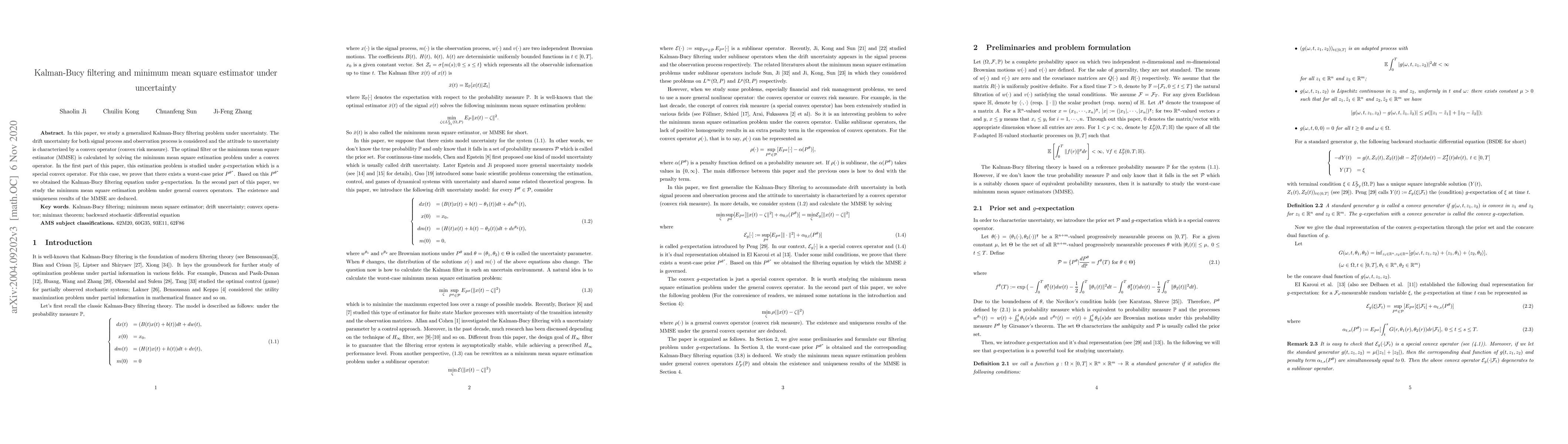 In this paper, we study a generalized Kalman-Bucy filtering problem under uncertainty. The drift uncertainty for both signal process and observation process is considered and the attitude to uncertainty is characterized by a convex operator (convex risk measure). The optimal filter or the minimum mean square estimator (MMSE) is calculated by solving the minimum mean square estimation problem under a convex operator. In the first part of this paper, this estimation problem is studied under g-expectation which is a special convex operator. For this case, we prove that there exists a worst-case prior. Based on this worst-case prior we obtained the Kalman-Bucy filtering equation under g-expectation. In the second part of this paper, we study the minimum mean square estimation problem under general convex operators. The existence and uniqueness results of the MMSE are deduced.