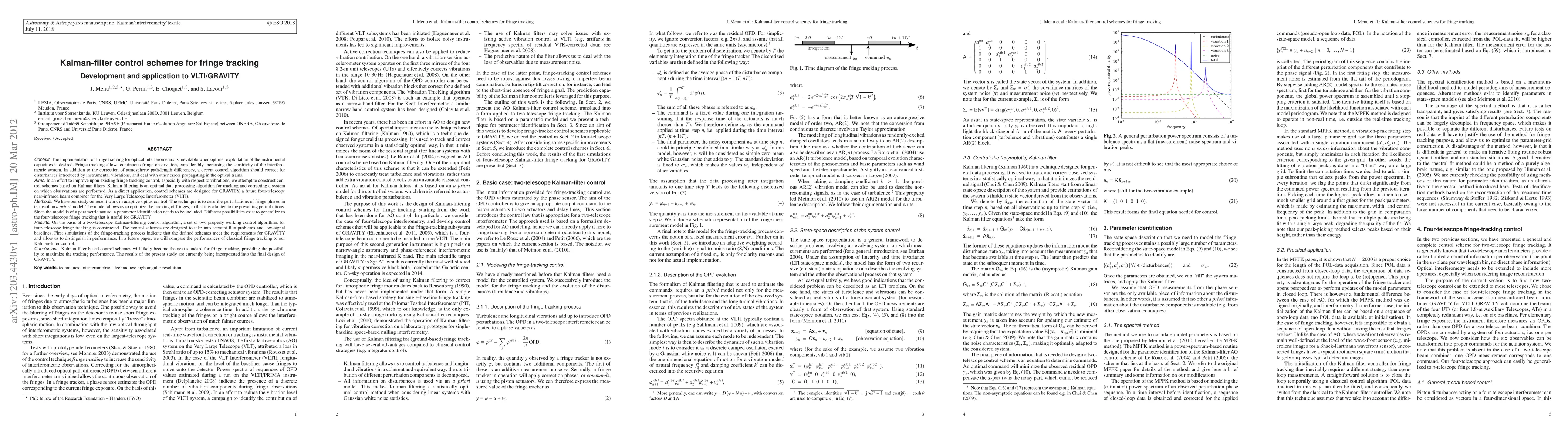 This paper develops Kalman-filter control schemes for fringe tracking in optical interferometers, specifically tailored for the GRAVITY instrument on the VLTI. The proposed control algorithms aim to optimize fringe tracking by correcting atmospheric and instrumental disturbances, and initial simulations show promising performance.