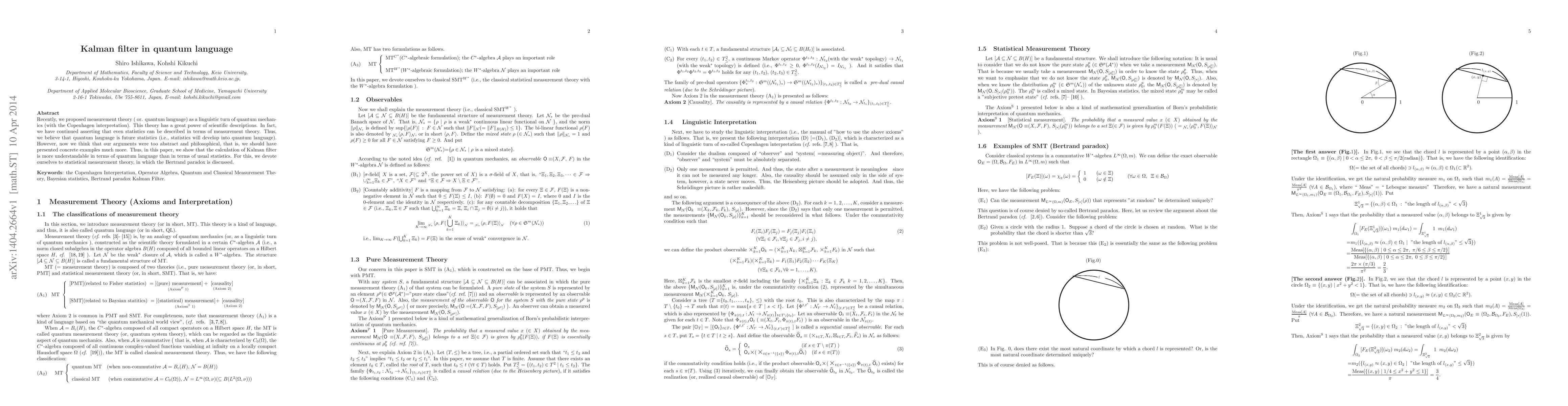 Recently, we proposed measurement theory ( or. quantum language) as a linguistic turn of quantum mechanics (with the Copenhagen interpretation). This theory has a great power of scientific descriptions. In fact, we have continued asserting that even statistics can be described in terms of measurement theory. Thus, we believe that quantum language is future statistics (i.e., statistics will develop into quantum language). However, now we think that our arguments were too abstract and philosophical, that is, we should have presented concrete examples much more. Thus, in this paper, we show that the calculation of Kalman filter is more understandable in terms of quantum language than in terms of usual statistics. For this, we devote ourselves to statistical measurement theory, in which the Bertrand paradox is discussed.