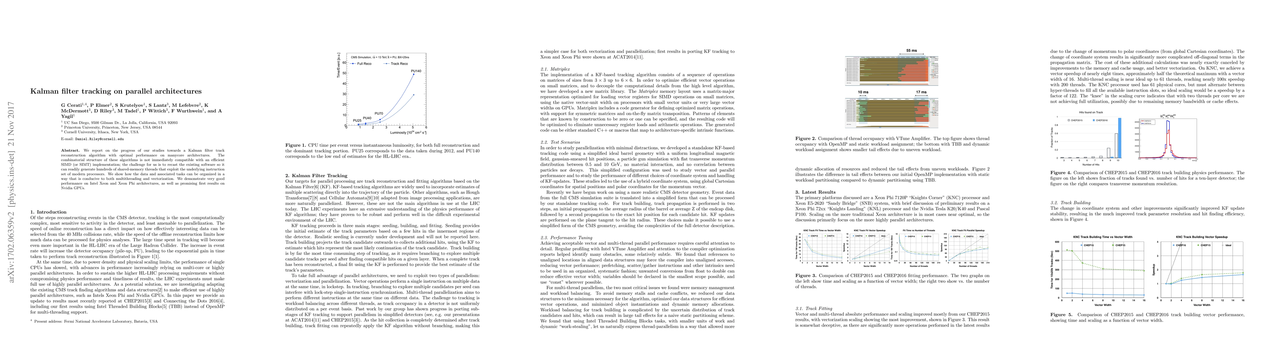 This paper explores optimizing Kalman filter-based track reconstruction algorithms for parallel architectures to meet the performance demands of particle tracking at high-luminosity colliders. The study demonstrates effective multithreading and vectorization strategies on Intel Xeon, Xeon Phi, and Nvidia GPU platforms, achieving significant performance improvements.