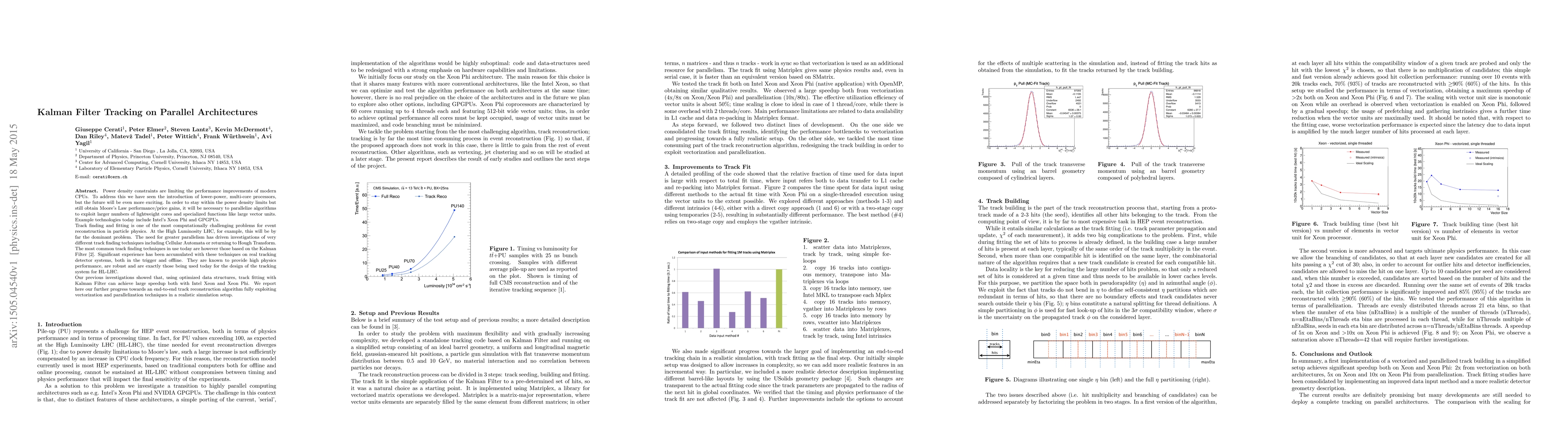 This paper explores the parallelization of Kalman Filter-based track finding techniques for particle physics, aiming to achieve significant speedups on multi-core processors and specialized units like Intel's Xeon Phi and GPGPUs to meet future performance demands while adhering to power density constraints. The authors report advancements in end-to-end track reconstruction algorithms leveraging vectorization and parallelization.