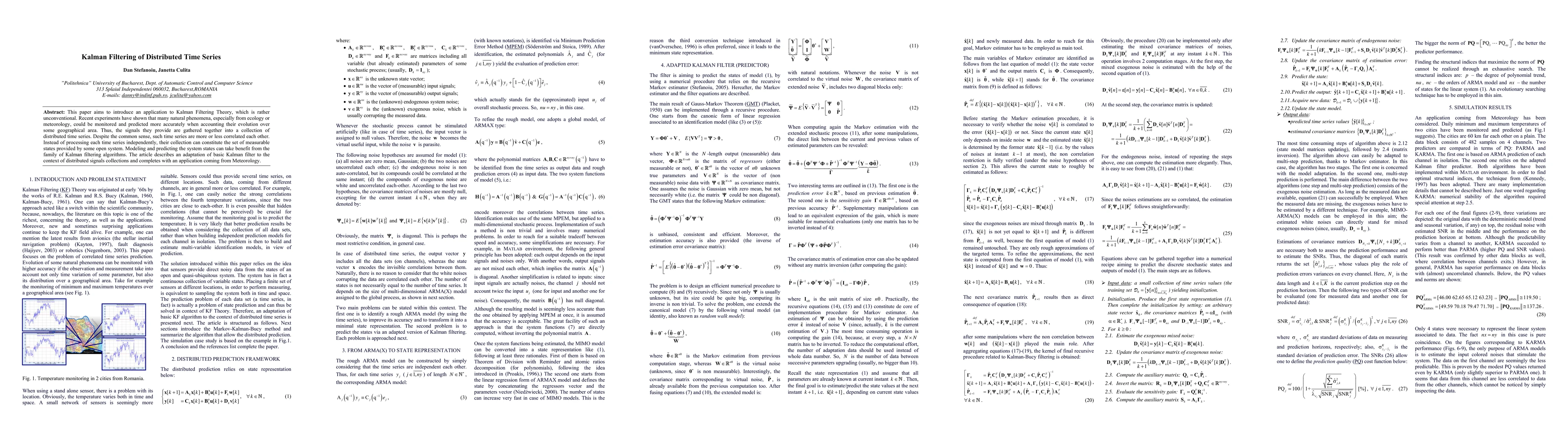 This paper aims to introduce an application to Kalman Filtering Theory, which is rather unconventional. Recent experiments have shown that many natural phenomena, especially from ecology or meteorology, could be monitored and predicted more accurately when accounting their evolution over some geographical area. Thus, the signals they provide are gathered together into a collection of distributed time series. Despite the common sense, such time series are more or less correlated each other. Instead of processing each time series independently, their collection can constitute the set of measurable states provided by some open system. Modeling and predicting the system states can take benefit from the family of Kalman filtering algorithms. The article describes an adaptation of basic Kalman filter to the context of distributed signals collections and completes with an application coming from Meteorology.