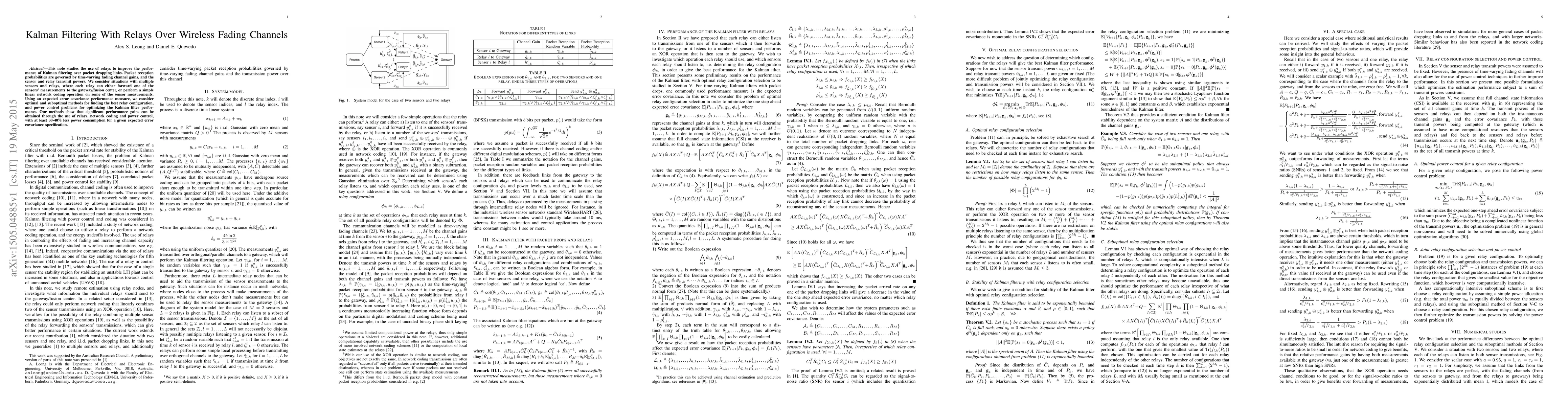 This paper shows that using relays in Kalman filtering can significantly improve performance over wireless channels with packet loss, reducing power consumption by 30-40%.