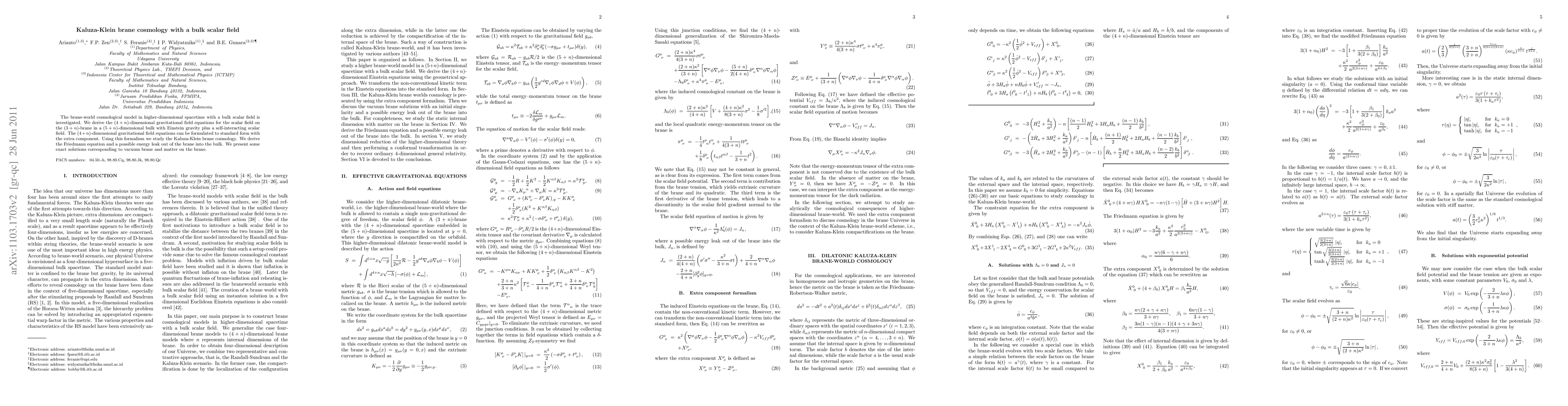 This paper explores a brane-world cosmology model in higher-dimensional spacetime incorporating a bulk scalar field, deriving $(4+n)$-dimensional gravitational field equations and studying the Friedmann equation. It also investigates energy leakage from the brane into the bulk and presents exact solutions for vacuum and matter-filled branes.