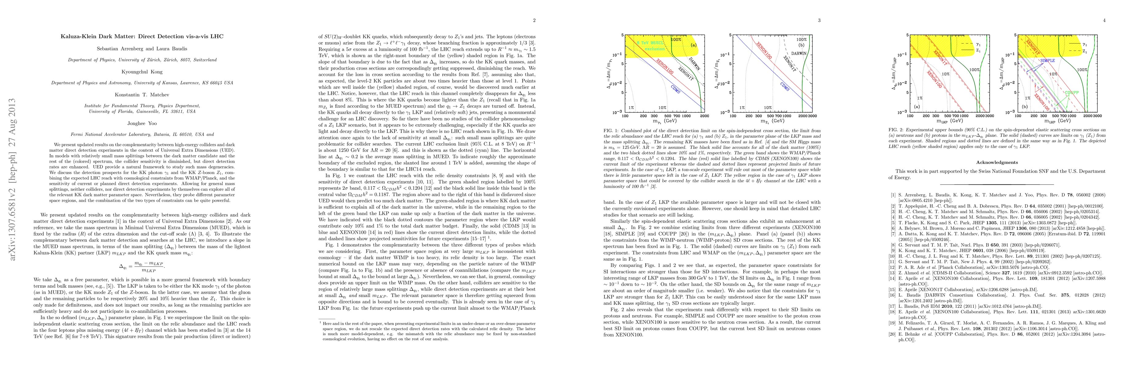 We present updated results on the complementarity between high-energy colliders and dark matter direct detection experiments in the context of Universal Extra Dimensions (UED). In models with relatively small mass splittings between the dark matter candidate and the rest of the (colored) spectrum, the collider sensitivity is diminished, but direct detection rates are enhanced. UED provide a natural framework to study such mass degeneracies. We discuss the detection prospects for the KK photon $\gamma_1$ and the KK $Z$-boson $Z_1$, combining the expected LHC reach with cosmological constraints from WMAP/Planck, and the sensitivity of current or planned direct detection experiments. Allowing for general mass splittings, neither colliders, nor direct detection experiments by themselves can explore all of the relevant KK dark matter parameter space. Nevertheless, they probe different parameter space regions, and the combination of the two types of constraints can be quite powerful.