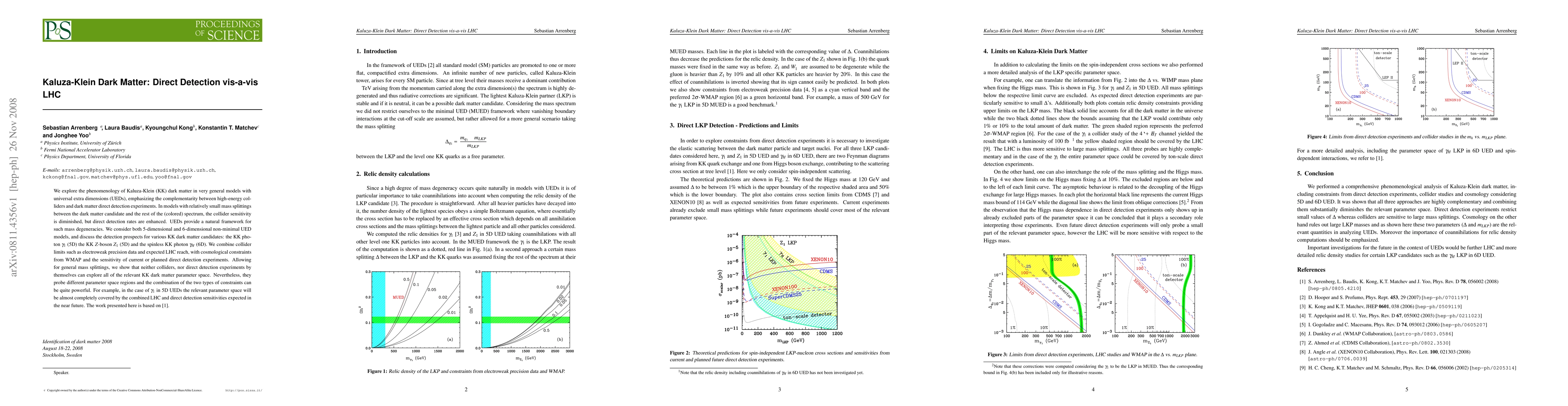 This paper investigates the phenomenology of Kaluza-Klein (KK) dark matter in universal extra dimension (UED) models, highlighting the complementary roles of high-energy colliders and direct detection experiments. It finds that while colliders may struggle with small mass splittings, direct detection experiments can enhance sensitivity, covering different parameter spaces and promising comprehensive coverage of KK dark matter in the near future.
