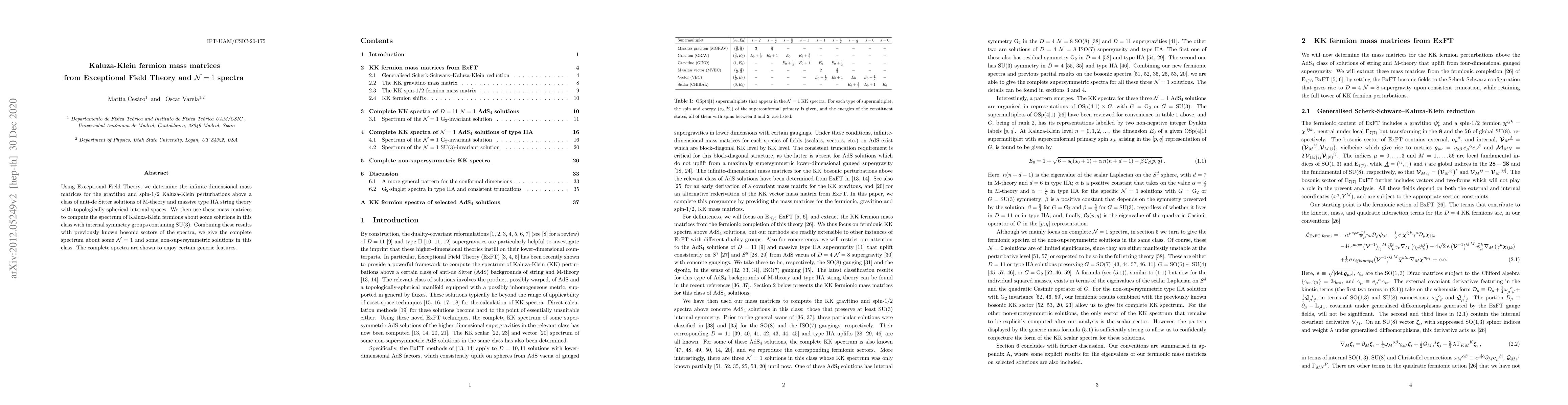 Summary: This paper utilizes Exceptional Field Theory to derive infinite-dimensional mass matrices for gravitino and spin-1/2 Kaluza-Klein perturbations in M-theory and type IIA string theory, then computes the complete fermionic and bosonic spectra for ${\cal N}=1$ and non-supersymmetric solutions with SU(3) symmetry, revealing generic features of these spectra.