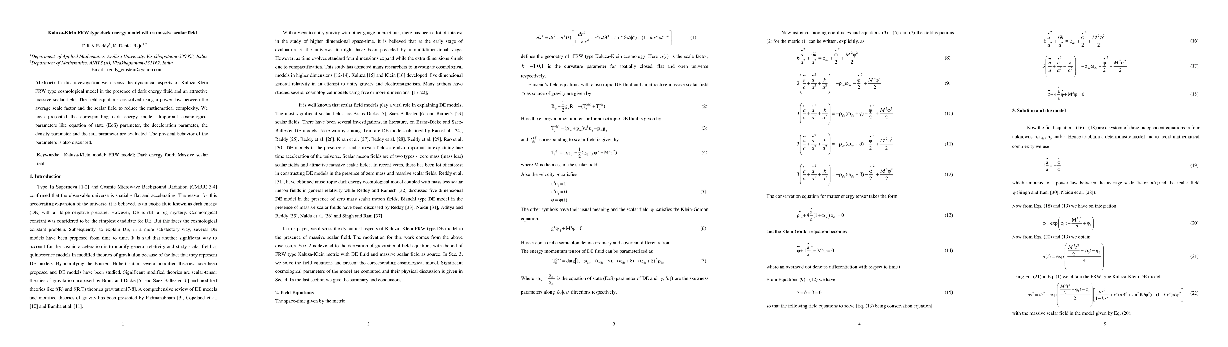 In this investigation we discuss the dynamical aspects of Kaluza-Klein FRW type cosmological model in the presence of dark energy fluid and an attractive massive scalar field. The field equations are solved using a power law between the average scale factor and the scalar field to reduce the mathematical complexity. We have presented the corresponding dark energy model. Important cosmological parameters like equation of state (EoS) parameter, the deceleration parameter, the density parameter and the jerk parameter are evaluated. The physical behavior of the parameters is also discussed.