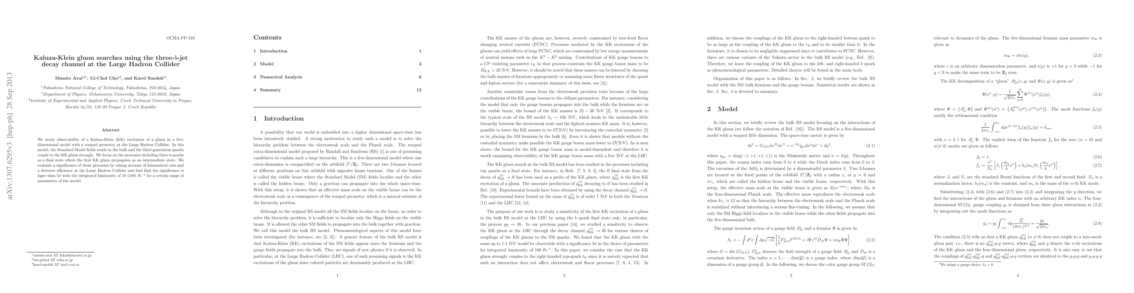 This paper investigates the potential detection of a Kaluza-Klein gluon in a five-dimensional warped geometry model at the Large Hadron Collider, focusing on processes with three b-jets as a final state. The study finds that the significance of these processes exceeds 5-sigma with sufficient integrated luminosity.
