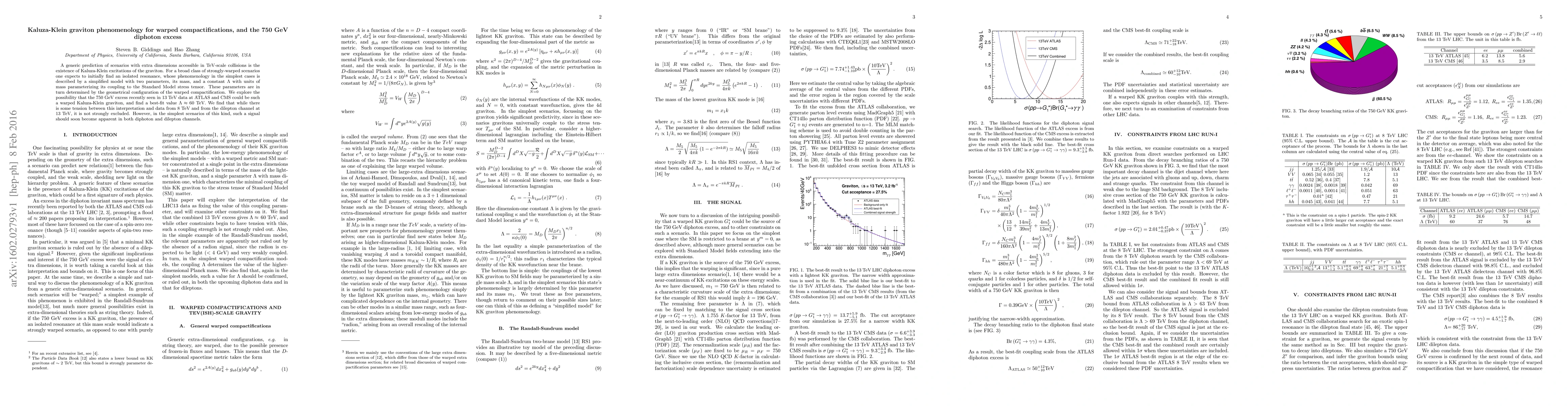 A generic prediction of scenarios with extra dimensions accessible in TeV-scale collisions is the existence of Kaluza-Klein excitations of the graviton. For a broad class of strongly-warped scenarios one expects to initially find an isolated resonance, whose phenomenology in the simplest cases is described by a simplified model with two parameters, its mass, and a constant $\Lambda$ with units of mass parameterizing its coupling to the Standard Model stress tensor. These parameters are in turn determined by the geometrical configuration of the warped compactification. We explore the possibility that the 750 GeV excess recently seen in 13 TeV data at ATLAS and CMS could be such a warped Kaluza-Klein graviton, and find a best-fit value $\Lambda\approx 60$ TeV. We find that while there is some tension between this interpretation and data from 8 TeV and from the dilepton channel at 13 TeV, it is not strongly excluded. However, in the simplest scenarios of this kind, such a signal should soon become apparent in both diphoton and dilepton channels.