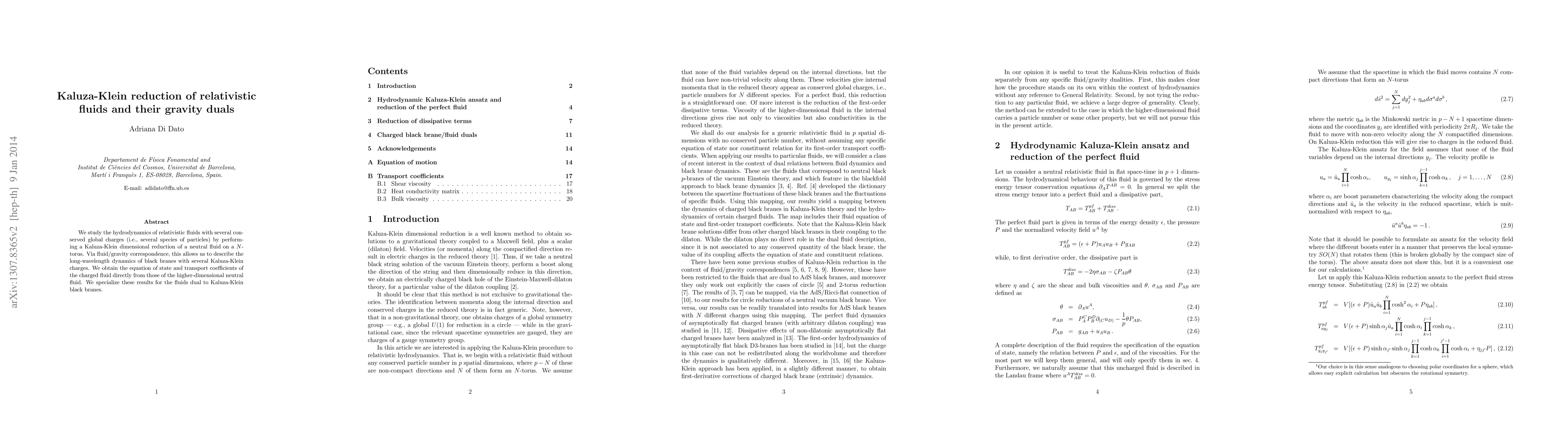 This paper investigates the hydrodynamics of relativistic fluids with multiple conserved charges through Kaluza-Klein reduction on an N-torus, revealing the long-wavelength dynamics of black branes with Kaluza-Klein charges and deriving the fluid's equation of state and transport coefficients from its higher-dimensional neutral counterpart.
