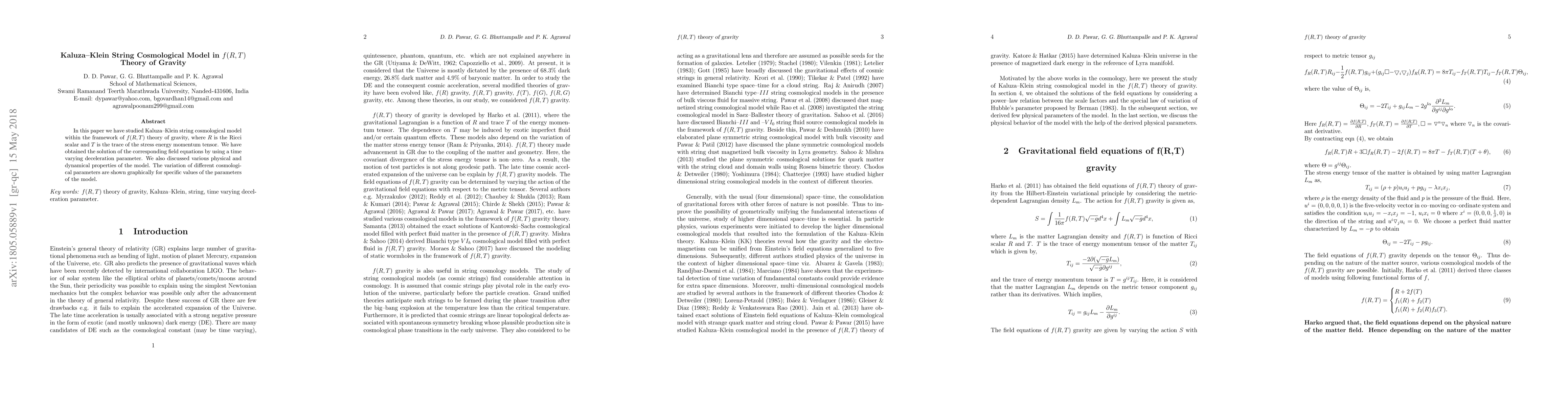 This paper explores a Kaluza-Klein string cosmological model in the context of f(R; T) gravity, solving the field equations with a time-varying deceleration parameter and analyzing its physical and dynamical properties, with graphical representations of varying cosmological parameters.