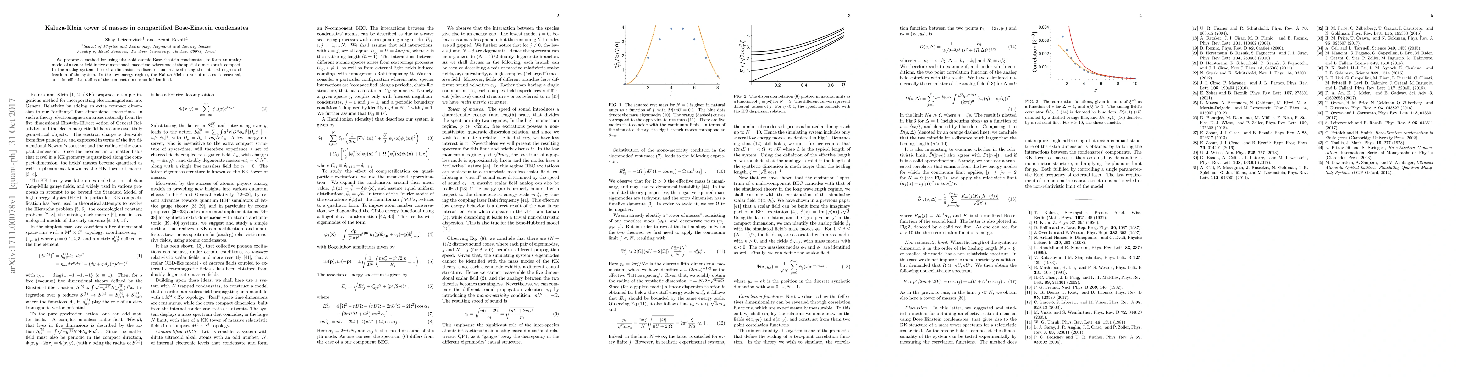 The paper proposes a method to use ultracold atomic Bose-Einstein condensates as an analog model of a scalar field in five-dimensional space-time, with one compact spatial dimension. In the low energy regime, the Kaluza-Klein mass spectrum is observed, and the effective radius of the compact dimension is identified.