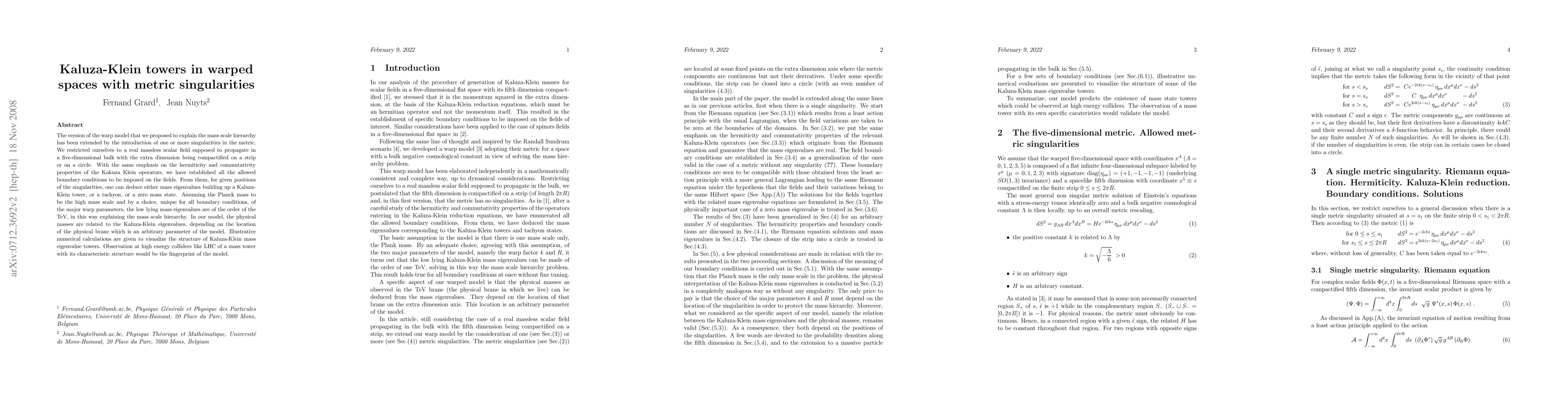 The paper presents a detailed analysis of Kaluza-Klein towers in warped spaces with metric singularities, establishing boundary conditions and providing numerical evaluations for specific cases, thereby extending previous work on warp models.
