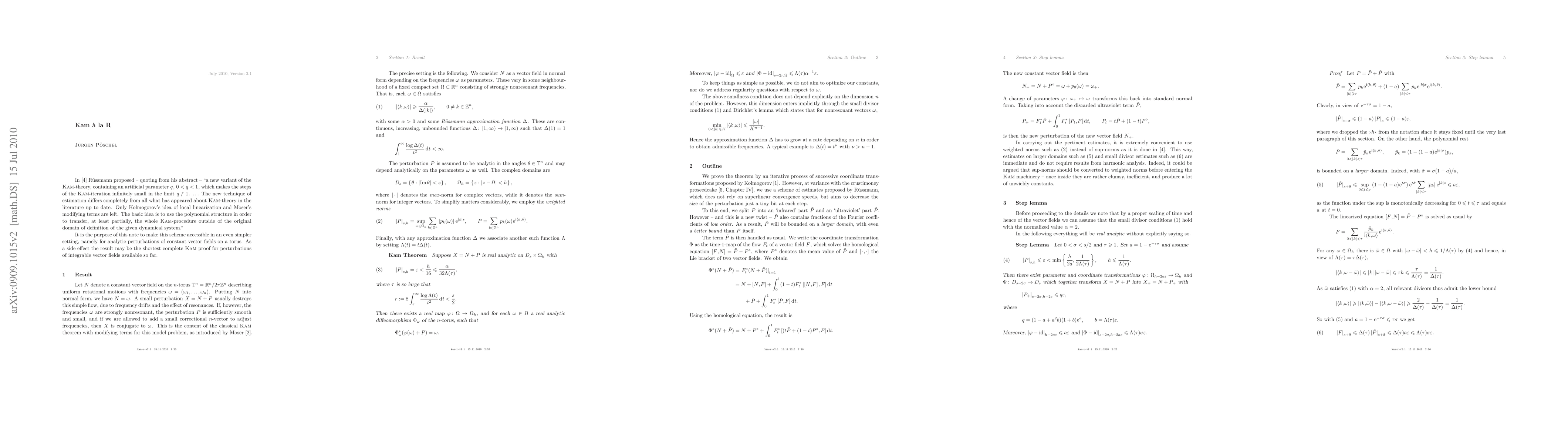 Recently R\"ussmann proposed a new new variant of KAM theory based on a slowly converging iteration scheme. It is the purpose of this note to make this scheme accessible in an even simpler setting, namely for analytic perturbations of constant vector fields on a torus. As a side effect the result may be the shortest complete KAM proof for perturbations of integrable vector fields available so far.