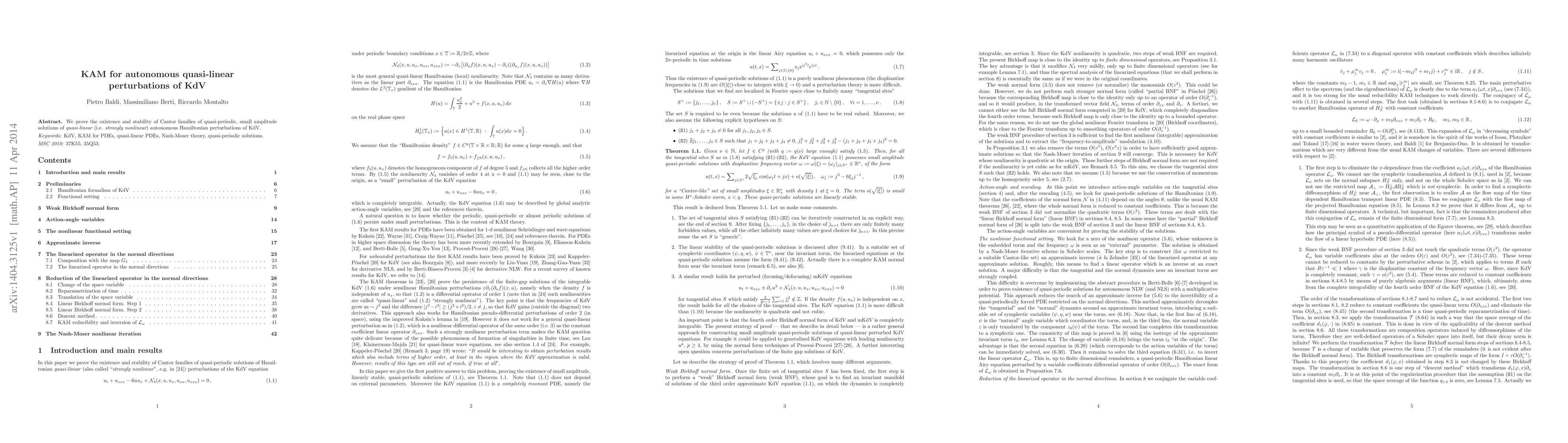 This paper establishes the existence and stability of Cantor families of quasi-periodic, small amplitude solutions for autonomous quasi-linear perturbations of the Korteweg-de Vries (KdV) equation within a Hamiltonian framework. The results demonstrate robust dynamical behavior under strong nonlinearity.