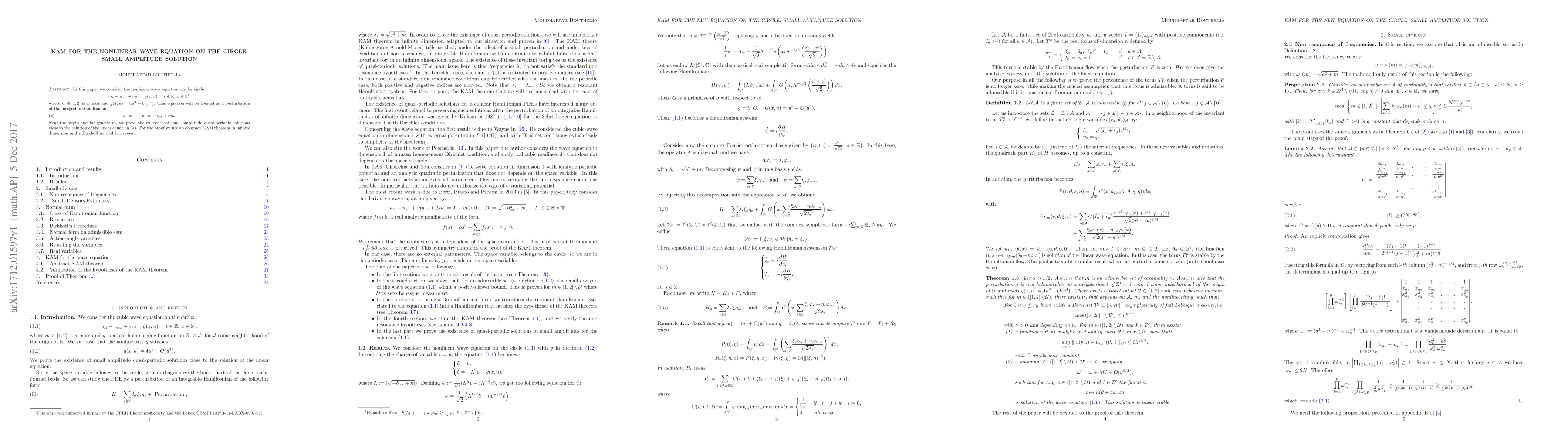 In this paper we consider the nonlinear wave equation on the circle:\begin{equation} \nonumberu\_{tt} - u\_{xx} + m u = g(x,u), \quad t \in \mathbb{R},\: x \in \mathbb{S}^1,\end{equation}where $m \in [1,2]$ is a mass and $g(x,u)=4u^3+ O(u^4)$. This equation will be treated as a perturbation of the integrable Hamiltonian:\begin{equation} \tag{$\ast$} \label{first equation}u\_t= v, \quad v\_t = - u\_{xx} + m u.\end{equation}Near the origin and for generic $m$, we prove the existence of small amplitude quasi-periodic solutions close to the solution of the linear equation\eqref{first equation}. For the proof we use an abstract KAM theorem in infinite dimension and a Birkhoff normal form result.