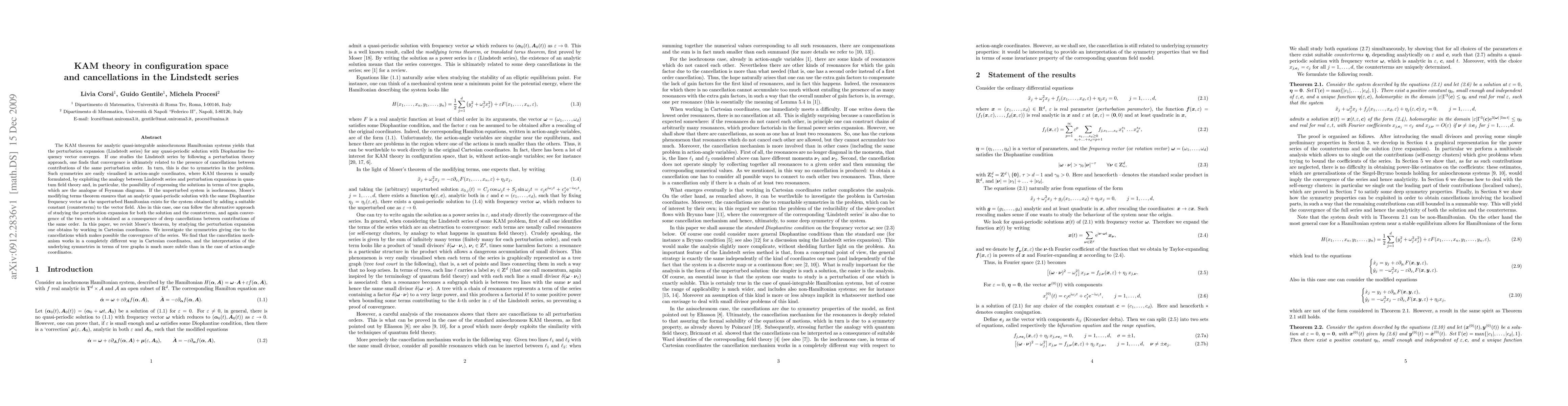 A study on KAM theory in configuration space reveals that cancellations between perturbation contributions lead to convergence of quasi-periodic solution expansions. This happens due to symmetries present in the problem, which have a different interpretation than in action-angle coordinates.