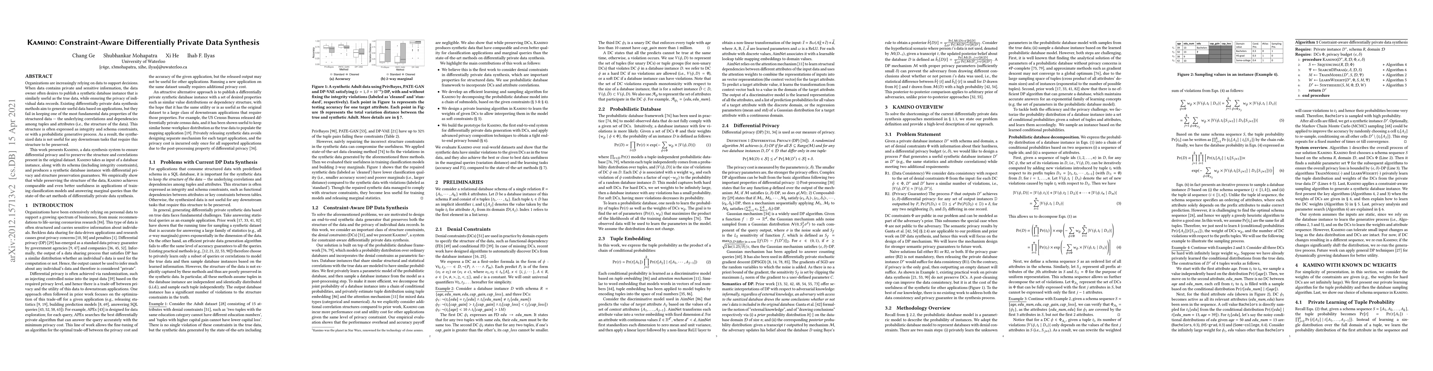 Kamino is a novel data synthesis system that ensures differential privacy while preserving the structural integrity and correlations of original datasets, outperforming existing methods in maintaining data usefulness for downstream tasks. It achieves this by incorporating schema constraints and probabilistic generative processes into its synthesis approach.