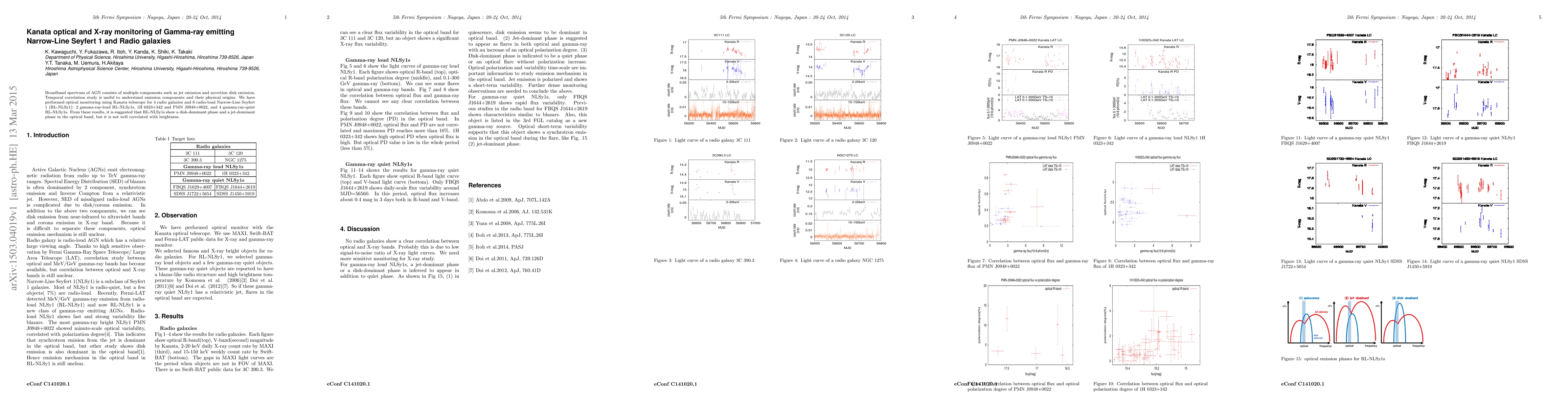 Broadband spectrum of AGN consists of multiple components such as jet emission and accretion disk emission. Temporal correlation study is useful to understand emission components and their physical origins. We have performed optical monitoring using Kanata telescope for 4 radio galaxies and 6 radio-loud Narrow-Line Seyfert 1 (RL-NLSy1): 2 gamma-ray-loud RL-NLSy1s, 1H 0323+342 and PMN J0948+0022, and 4 gamma-ray-quiet RL-NLSy1s. From these results, it is suggested that RL-NLSy1s show a disk-dominant phase and a jet-dominant phase in the optical band, but it is not well correlated with brightness.
