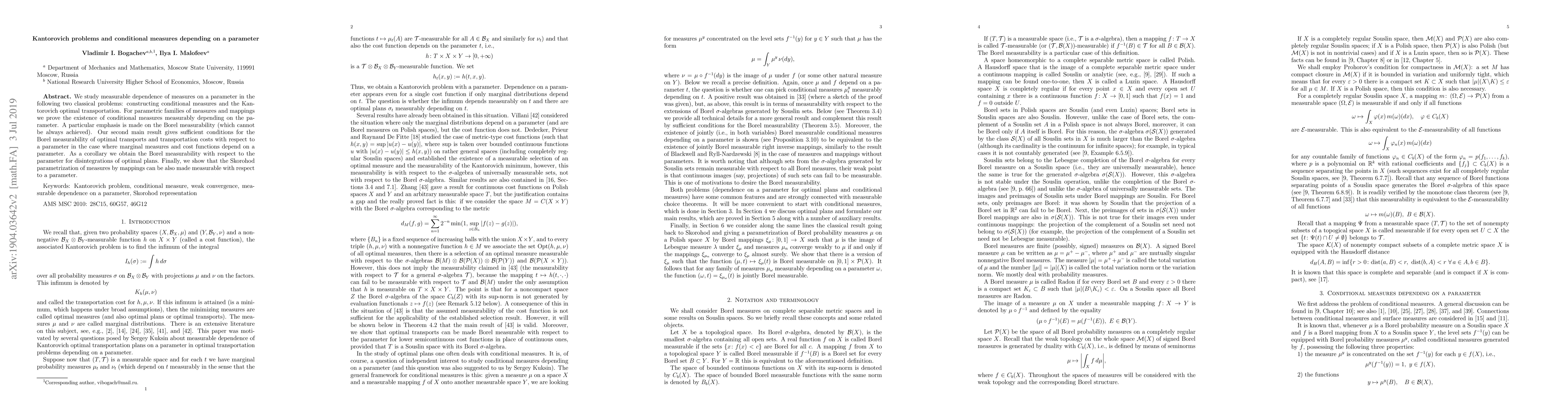 This paper investigates the measurable dependence of measures on a parameter in the context of conditional measures and Kantorovich optimal transportation problems. It provides sufficient conditions for the existence and Borel measurability of conditional probabilities and optimal transports, and demonstrates the measurability of Skorohod parametrizations.