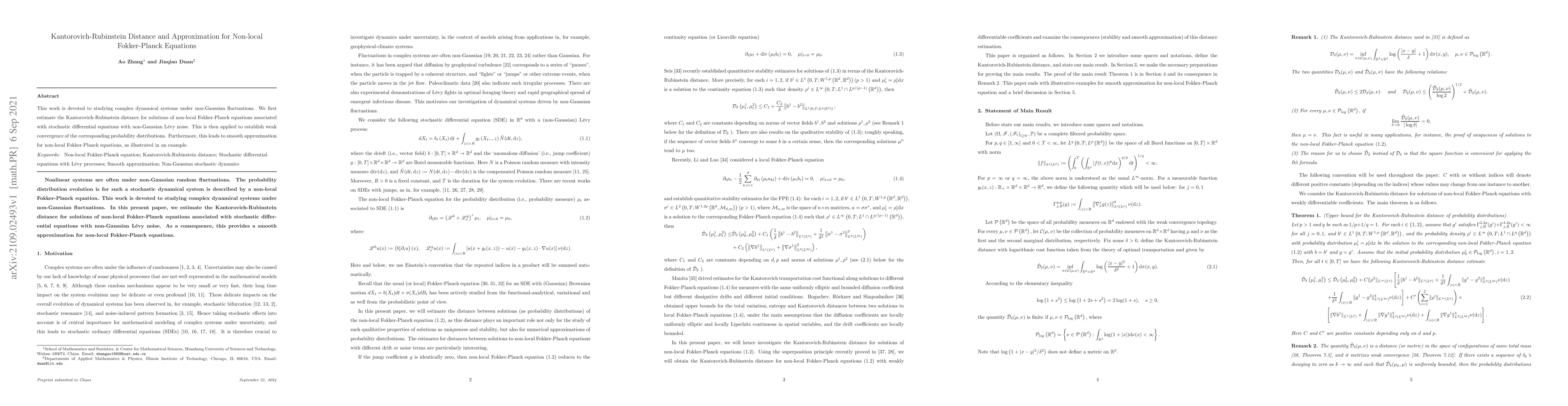 This paper investigates complex dynamical systems with non-Gaussian fluctuations, estimating the Kantorovich-Rubinstein distance for solutions of non-local Fokker-Planck equations and establishing their weak convergence, ultimately leading to smooth approximations for these equations.