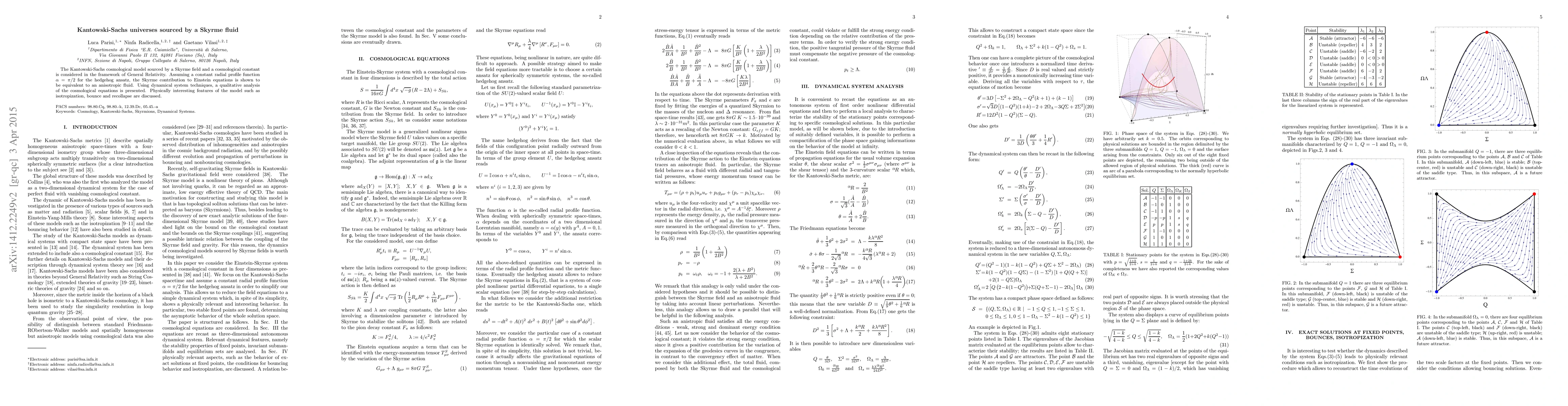 This paper explores the Kantowski-Sachs cosmological model driven by a Skyrme field and a cosmological constant within General Relativity, demonstrating that the Skyrme contribution behaves like an anisotropic fluid. The study employs dynamical systems to analyze the model's features, including isotropization, bounce, and recollapse.