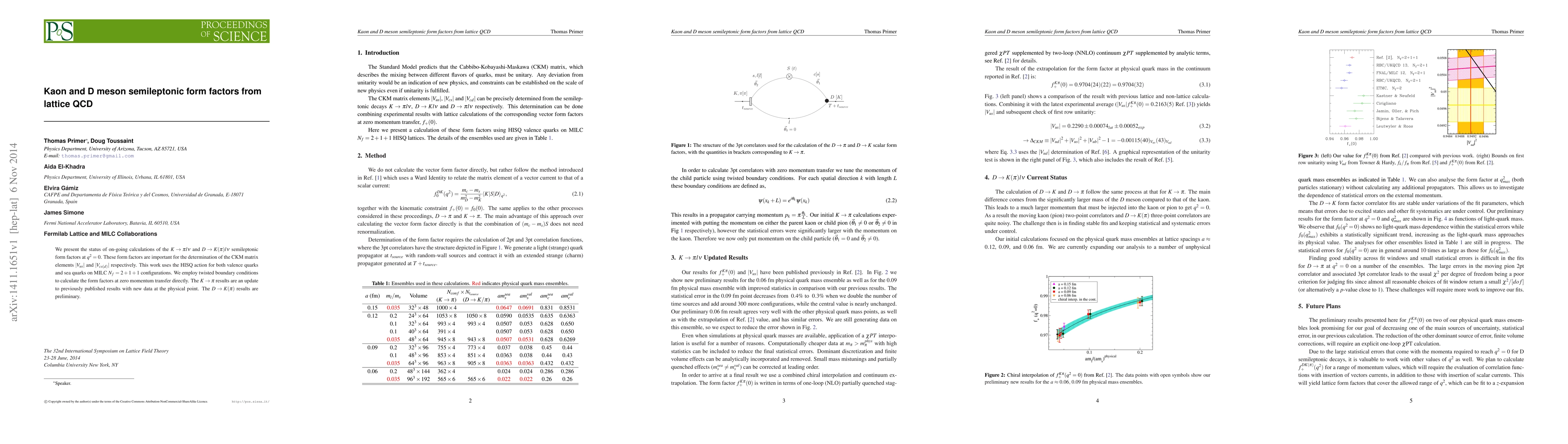 We present the status of on-going calculations of the $K\to\pi l\nu$ and $D\to K(\pi) l\nu$ semileptonic form factors at $q^2=0$. These form factors are important for the determination of the CKM matrix elements $\lvert{V_{us}}\rvert$ and $\lvert{V_{cs(d)}}\rvert$ respectively. This work uses the HISQ action for both valence quarks and sea quarks on MILC $N_f=2+1+1$ configurations. We employ twisted boundary conditions to calculate the form factors at zero momentum transfer directly. The $K\to\pi$ results are an update to previously published results with new data at the physical point. The $D\to K(\pi)$ results are preliminary.