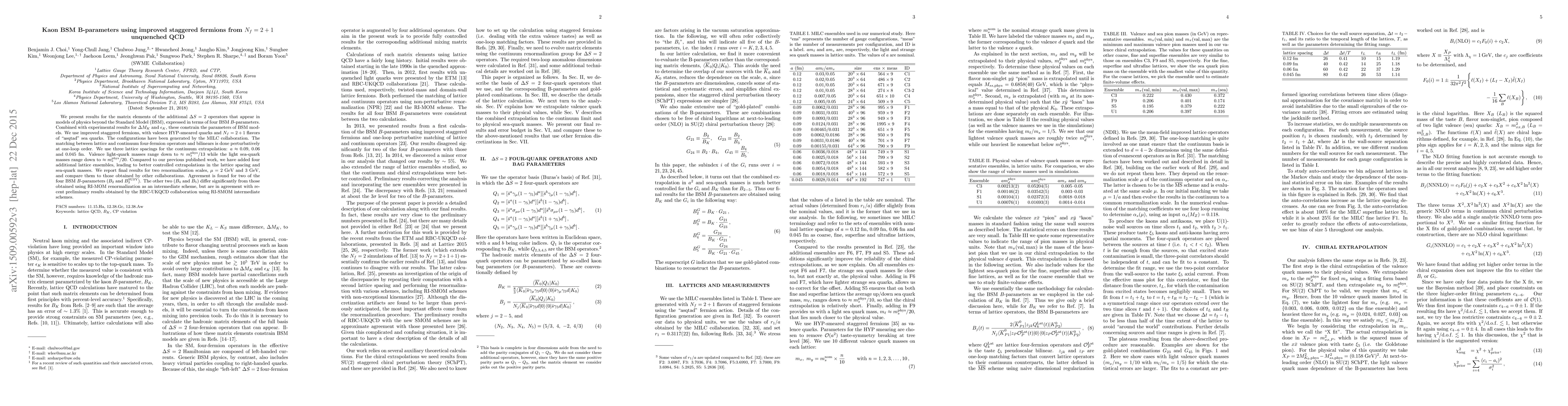 This paper reports lattice QCD calculations of matrix elements for $\Delta S=2$ operators relevant to physics beyond the Standard Model, using improved staggered fermions and $N_f=2+1$ flavors. The results constrain BSM models through four BSM $B$-parameters, showing agreement for two parameters but significant differences for the others compared to previous methods.